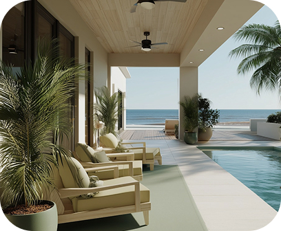 - Placement of durable and weather-resistant furniture for patios, balconies, or terraces.